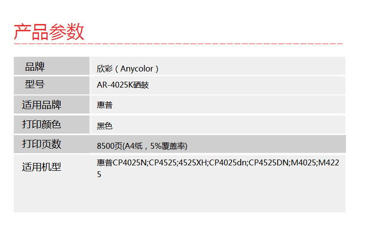商品名稱:欣彩硒鼓 /(專業(yè)版) AR-4025K/CE260A